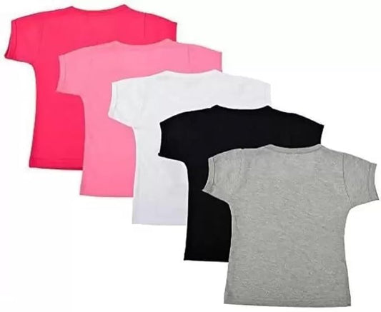 Girl's Colored Bio Washed Plain Cotton Short Sleeve Solid T-Shirt