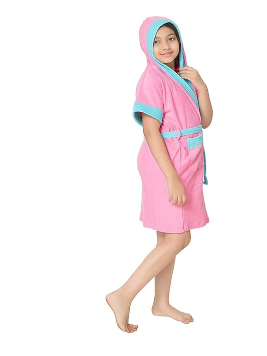 Kids Girl Hood Bathrobe | Terry Cotton Shower Gown | Half Sleeve Knee Length Kids Girls Bath Robes | Pocket with Waist belt Kid Girls Bathrobes